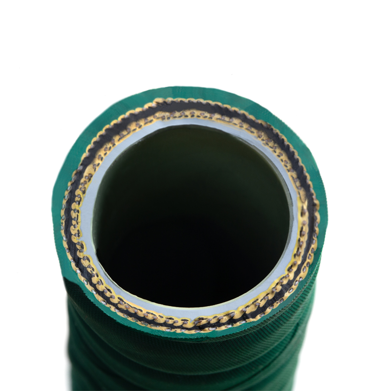 應用本品可用于灰泥、水泥漿和噴射混凝土的相關作業,向混凝土結構、大壩、隧道壁、游泳池等泵送多種類型的物料。可被用作泵機設備與硬管道之間的柔韌性連接(軟連接)。技術參數內層:黑色Tufsyn(聚丁二烯共混橡膠)增強層:多層螺旋纏繞的高強度纖維織物外層:黑色的Plioflex合成橡膠(環裹壓印)工作溫度:-25°F到180°