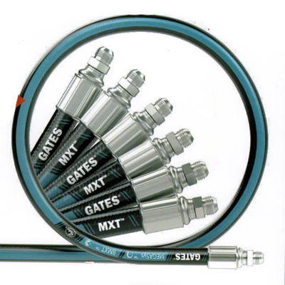 用途:MXT性能超越了行業(yè)標準。柔韌性更好,彎曲半徑更小,重量更輕,便于在狹小復雜的空間布管。采用蓋茨專業(yè)材料科學技術,提供高強度鋼絲編織技術,結構更緊湊,占用面積更小。滿足SAE 100R16和SAE 100R17*的尺寸和性能。滿足SAE 100R2和SAE 100R19*的性能。 對SAE 100R17覆蓋尺寸-4到-12,對SAE 100R19覆蓋尺寸-4到-8