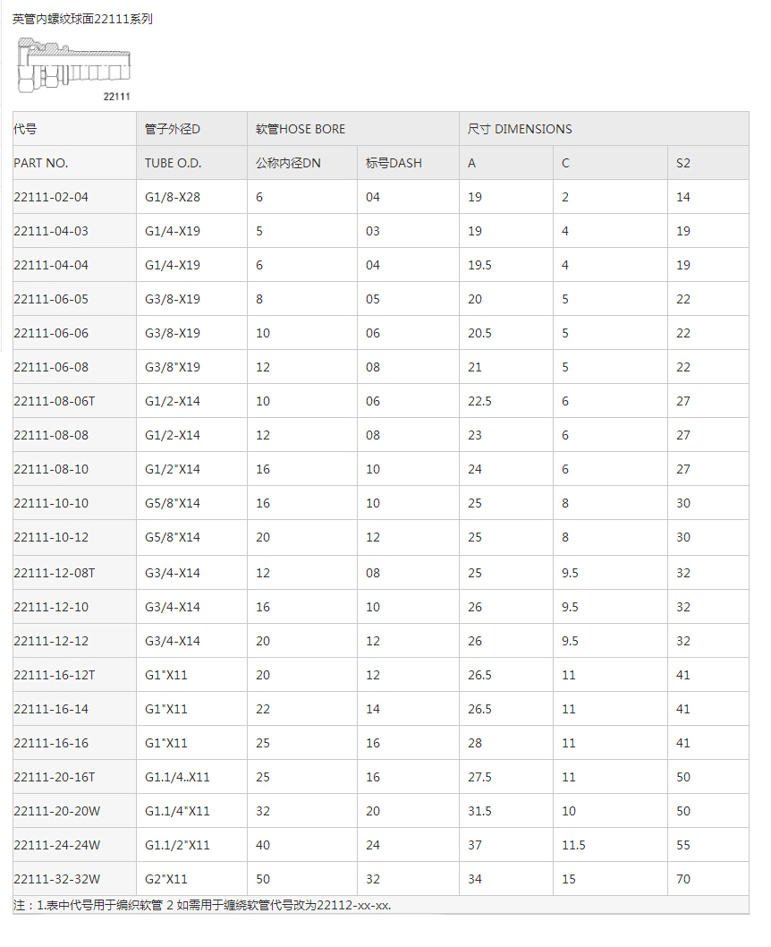 22211英管內螺紋平面系列