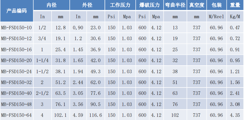增強層:單層高強度合成纖維編織層,編制角度使得軟管具備高耐曲撓性,并對接頭有抱緊度,不必再使用卡箍緊固。